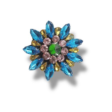 applicazione in tema floreale interamente composta da pietre in vetro cucite a mano 5 cm x 5 cm.