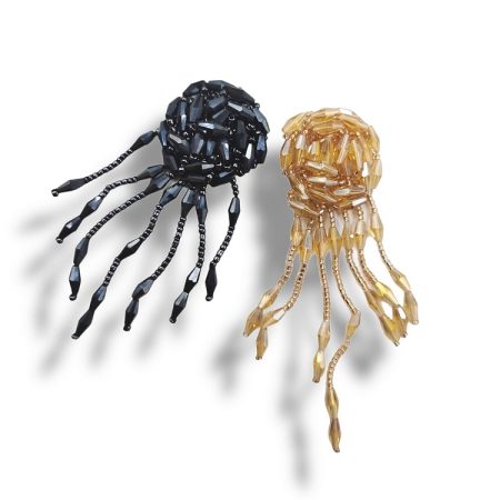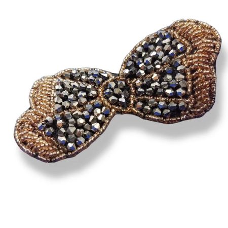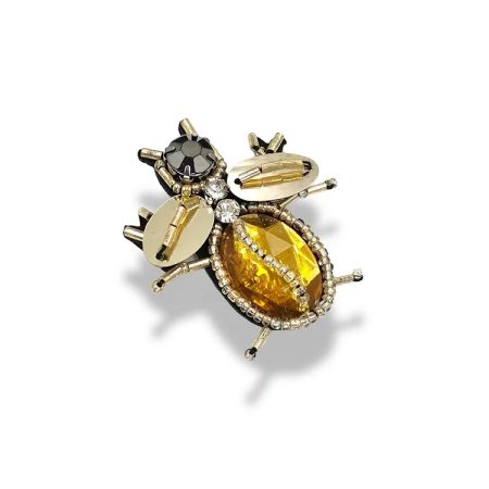 applicazione insetto con pietra ovale champagne, file di corallini, paillettes e cannottiglie ricamate a mano 5 cm x 4 cm