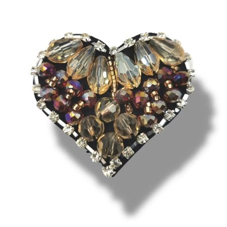 applicazione interamente composta da corallini cuciti a mano a forma di cuore 5 cm x 5,5 cm.
