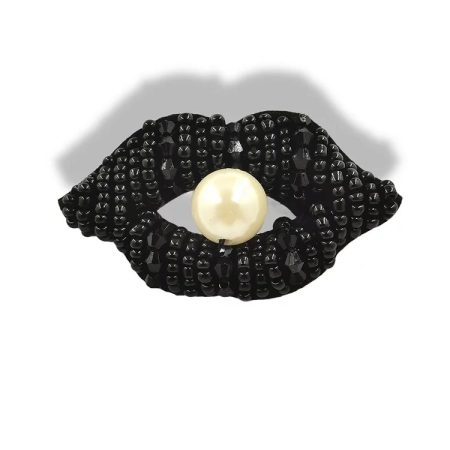 applicazione interamente composta da corallini cuciti a mano a forma di bocca con perla crema centrale 3,5 cm x 6,5 cm