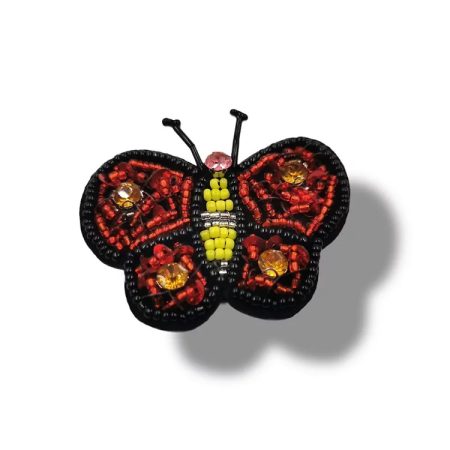 applicazione interamente composta da pietre in vetro e corallini cuciti a mano a forma di farfalla 5 cm x 6 cm