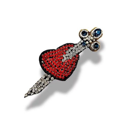 applicazione interamente composta da pietre in vetro e corallini cuciti a mano a forma di cuore con spada 5,5 cm x 14,5 cm.
