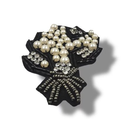 applicazione interamente composta da pietre in vetro, corallini e mezze perle cucite a mano a forma di bouquet di fiori 9 cm x 7