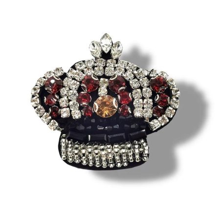 applicazione interamente composta da pietre in vetro e corallini cuciti a mano a forma di corona 7 cm x 7 cm.