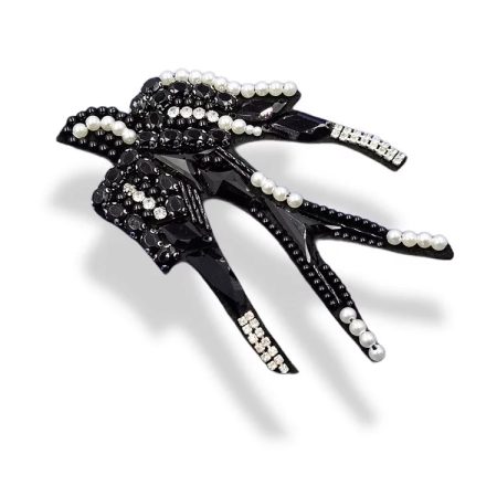 applicazione interamente composta da pietre in vetro e perle cucite a mano a forma di rondine 9 cm x 13 cm.