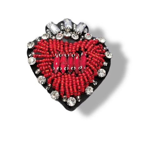 applicazione interamente composta da pietre in vetro e corallini cuciti a mano a forma di cuore 6,5 cm x 5,5 cm