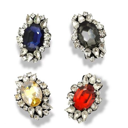 applicazione monile con pietre crystal castonate che racchiudono una pietra centrale in vetro di forma ovale, ricamate su base p