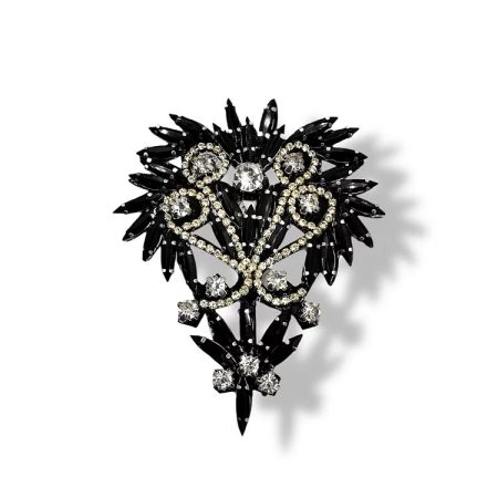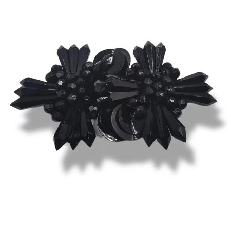 applicazione morsetto interamente composto da perle sfaccettate, pietre in vetro e paillettes cucite a mano 11 cm x 6 cm