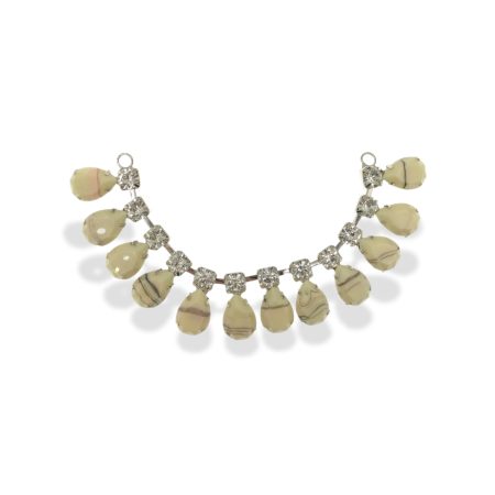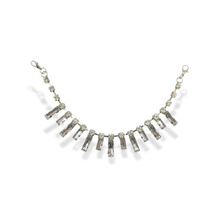 applicazione ricamata raffigurante un cuore, realizzata con paillettes e pietre ricamate e file di strass che compongono le lett