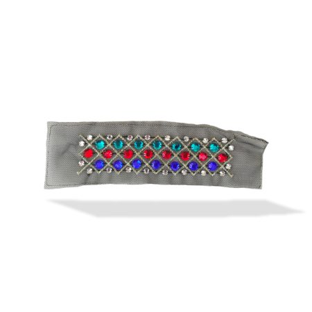applicazione con pietre in vetro cucito a mano 8 cm x 3,5 cm