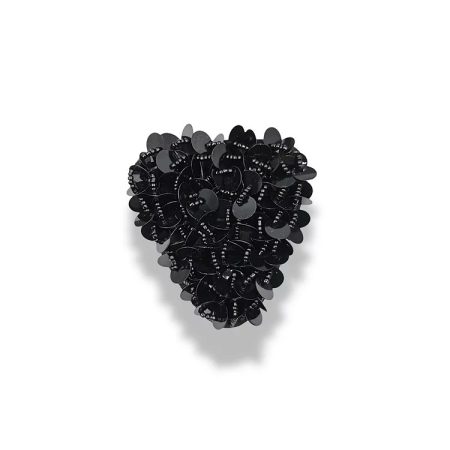 applicazione cuore con file di corallini intrecciati a paillettes, su base panno lenci 8 cm x 7 cm