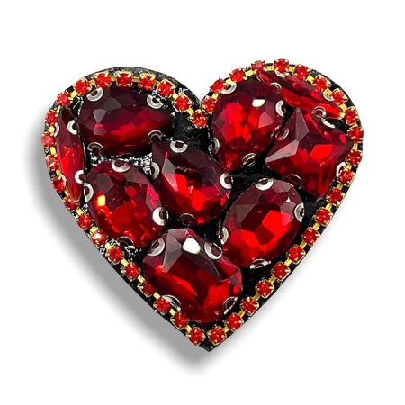 applicazione cuore con pietre in vetro e catena strass cucito a mano 4,5 cm x 4 cm