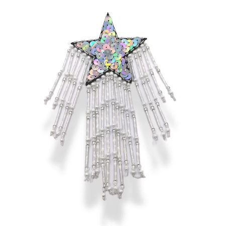 applicazione termoadesiva a forma di stella interamente composta da paillettes e pendenti in canottiglie e corallini. tutto cuci