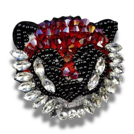 applicazione termoadesiva a forma di tigre ricamata e decorata con pietre in vetro e corallini cuciti a mano 5 cm x 4,3 cm