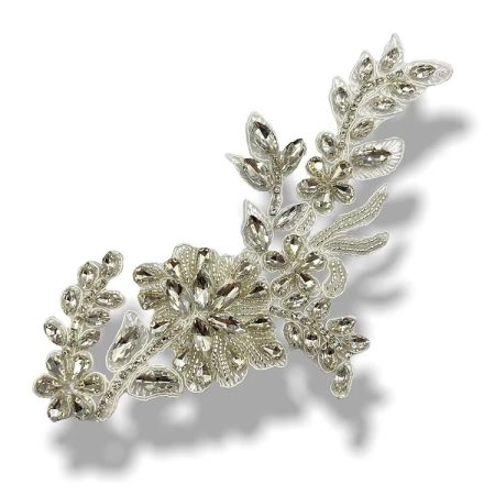 applicazione termoadesiva a tema floreale interamente composta da pietre in vetro e strass. tutto cucito a mano 13 cm x 5 cm