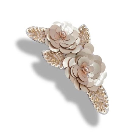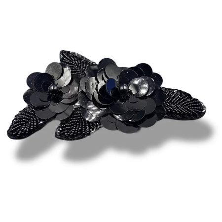 applicazione termoadesiva a forma di foglie e fiori interamente composta da paillettes, corallini e perle cucite a mano 10 cm x