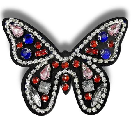applicazione termoadesiva interamente composta da pietre in vetro a forma di farfalla 6 cm x 7,5 cm.