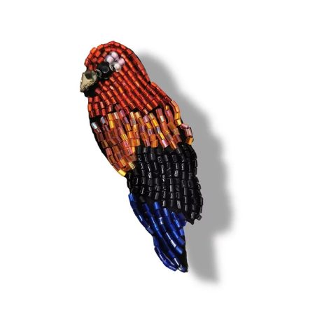 applicazione termoadesiva interamente composta da corallini cuciti a mano a forma di pappagallo e pietra in vetro sul becco 3 cm