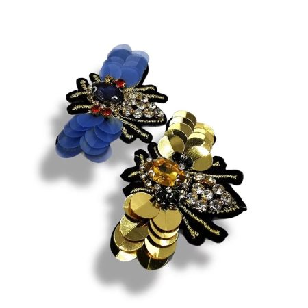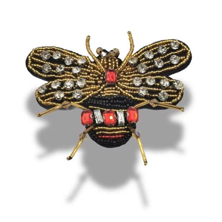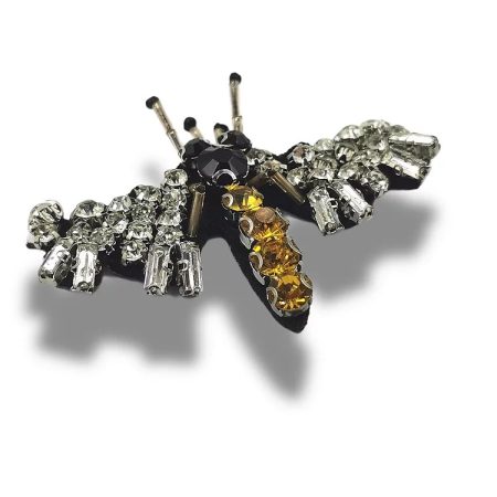 applicazione termoadesiva interamente composta da pietre in vetro e paillettes cucite a mano a forma di ape 4 cm x 6,5 cm.