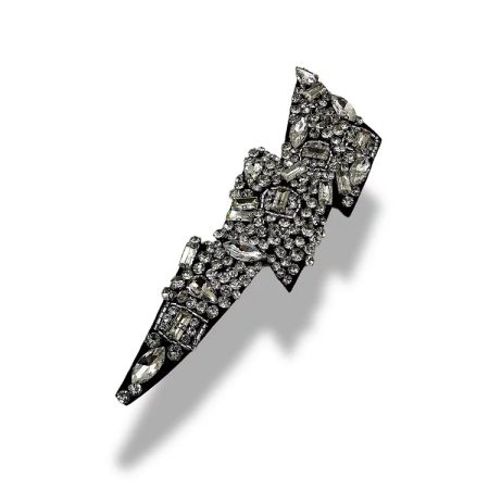 applicazione termoadesiva interamente composta da pietre in vetro cucite a mano a forma di fulmine 11,5 cm x 3,5 cm.
