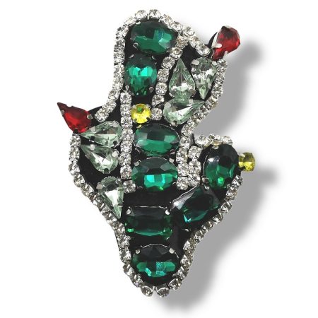 applicazione termoadesiva interamente composta da pietre in vetro cucite a mano a forma di cactus 9 cm x 6 cm.