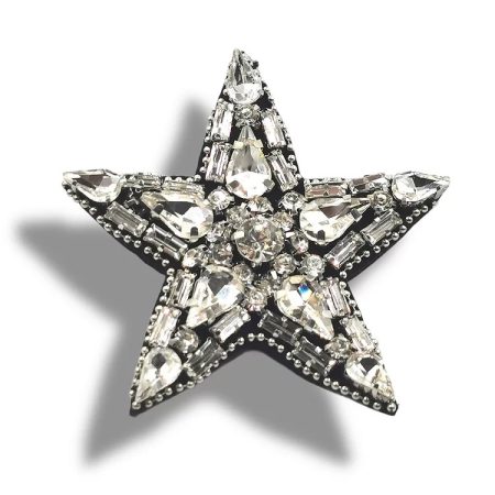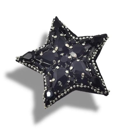 applicazione termoadesiva interamente composta da pietre in vetro cucite a mano a forma di stella 5 cm x 5,5 cm.