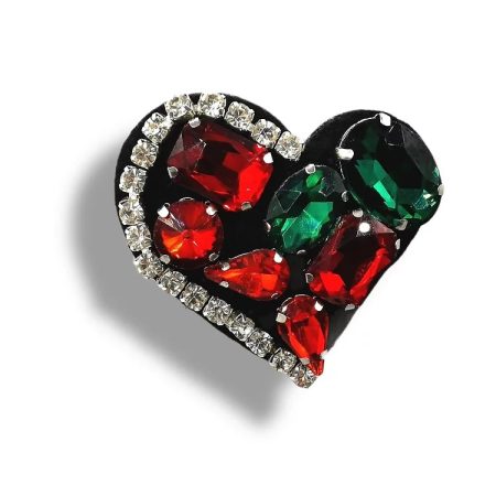 applicazione termoadesiva interamente composta da pietre in vetro cucite a mano a forma di cuore 4,5 cm x 5 cm.