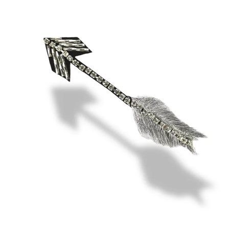 applicazione termoadesiva interamente composta da pietre in vetro, canottiglie e frangia lurex cucite a mano a forma di freccia