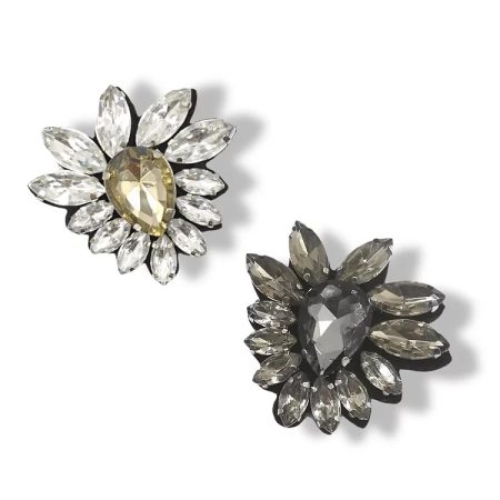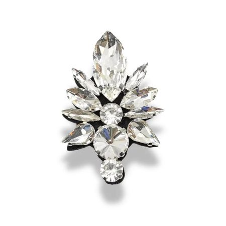 applicazione con pietre acriliche singole di color crystal con castone rinforzato, ricamate a mano su base panno lenci 6 cm x 4
