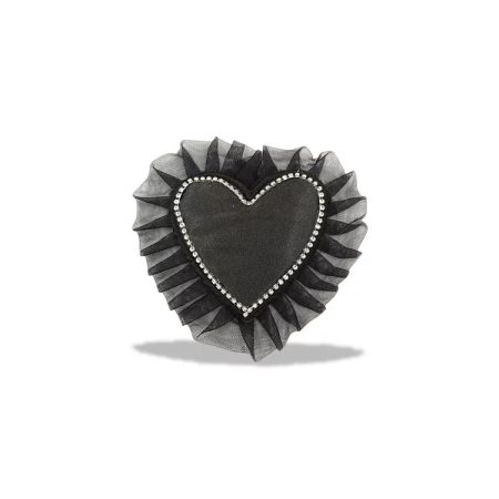 applicazione cuore in raso nero e vi È posta una catena di strass crystal che ne delinea i bordi h:13 cm x 13 cm