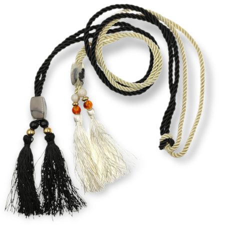 cintura laccio treccia bicolore con tubi e sfere 150 cm