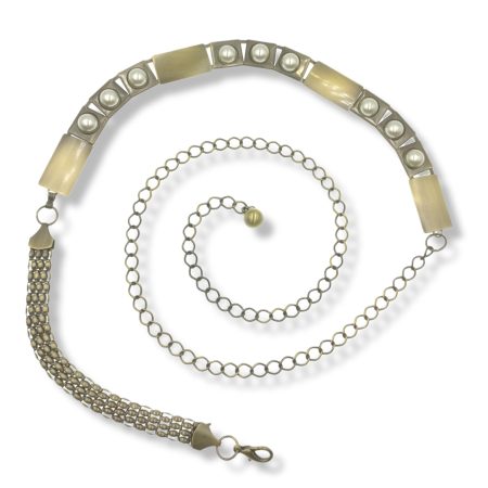 cintura metallo effetto invecchiato con perle incastonate