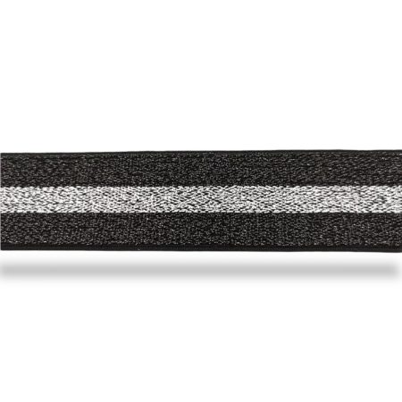 elastico glitterato nero e linea centrale in lurex argento cm 3,8