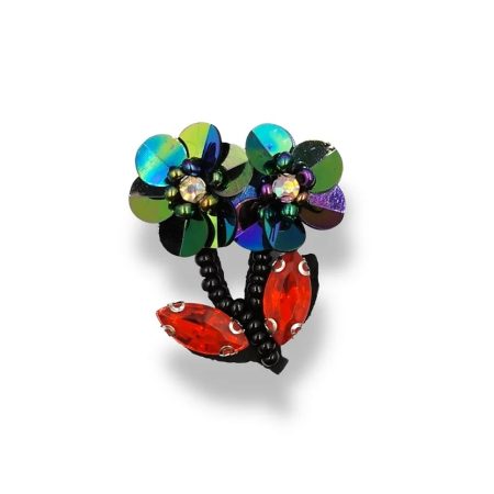 applicazione raffigurante un fiore con foglie, patchgrande realizzata con paillettes ricamate interamente a macchina e ricamo in