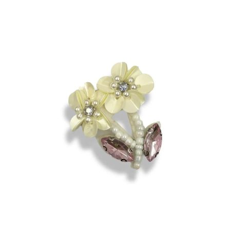 applicazione raffigurante un fiore, È realizzata con pietra crystal castonata al centro e da paillettes ricamate a forma di peta