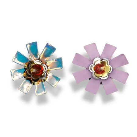 applicazione raffigurante un fiore, realizzata con corallino centrale e paillettes sovrapposte a forma di petali 2 cm x 2 cm