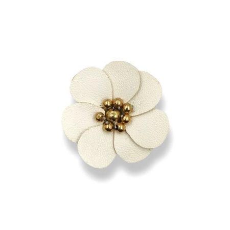 applicazione raffigurante un fiore, formato da perline bronzate al centro di petali, realizzati in tessuto ecopelle 3,5 cm x 3,5