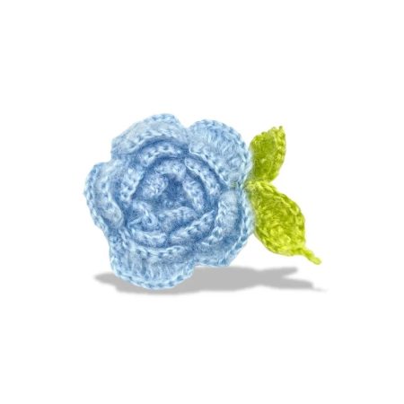 applicazione raffigurante un fiore con petali, realizzata con lana d’angora ad uncinetto 6 cm x 9 cm