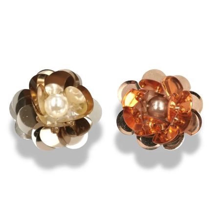 applicazione raffigurante un fiore, reallizzata con perla centrale e paillettes e corallini, ricamati e sovrapposti 3 cm x 3 cm