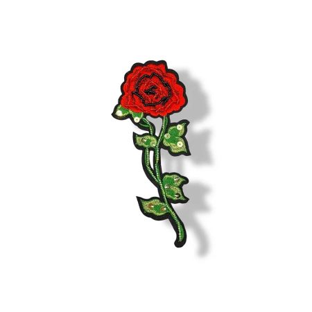 applicazione termoadesiva raffigurante un fiore, patchgrandericamata interamente a macchina, i dettagli sono realizzati con pai