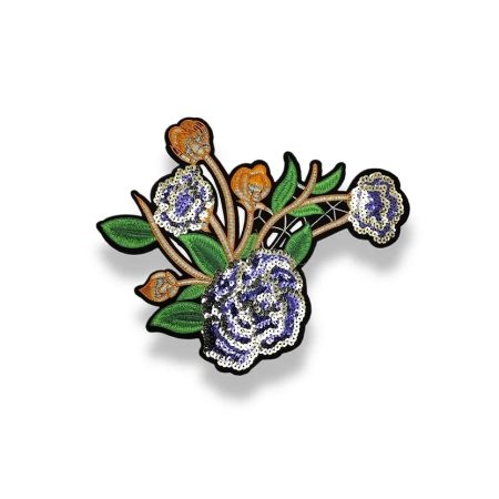 applicazione termoadesiva raffigurante dei fiori con petali e foglie,patchgrande realizzata interamente con paillettes ricamate
