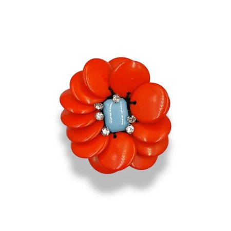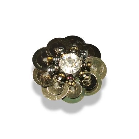 applicazione raffigurante un fiore, reallizzata con pietra crystal centrale e paillettes e corallini, ricamati e sovrapposti 2,5