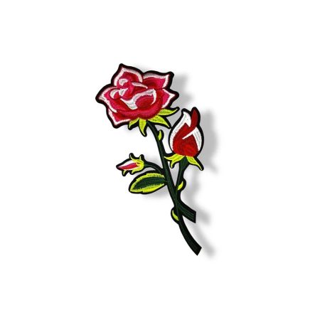 applicazione termoadesiva raffigurante dei fiori con stelo e foglie, patchgrande ricamata con colori vivaci a macchina 27 cm x