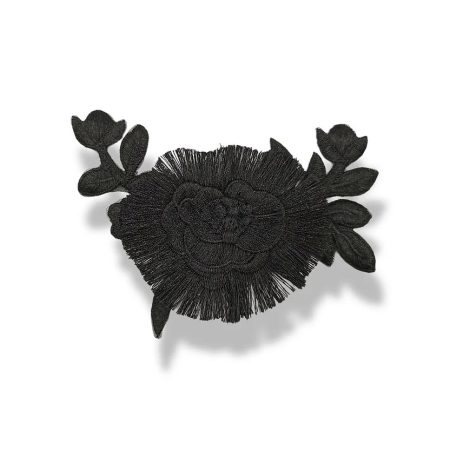 applicazione raffigurante un fiore, ricamata tinta su tinta e con frange ai bordi del fiore 9 cm x 12 cm