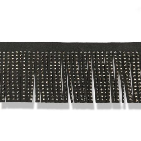 passamaneria realizzata con frange a cui sono state applicate borchie sfaccettate color ematite cm 14