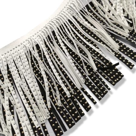passamaneria realizzata con frange a cui sono state applicate borchie semitonde cm 14
