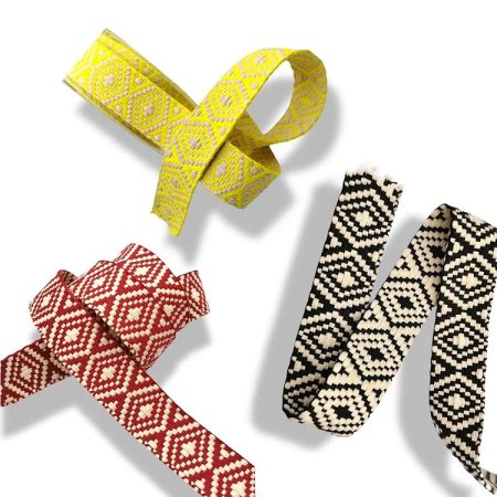 passamaneria interamente ricamata a macchina, realizzata in effetto corda con ricamo in design etnico cm 4.3