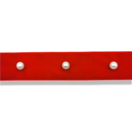 passamaneria realizzata con una bandina in raso e perle applicate al suo interno, distanziate ogni 4 cm mm 25