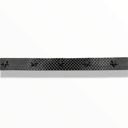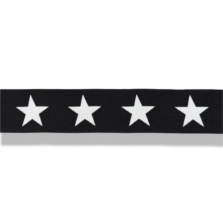 passamaneria realizzata da una bandina in spigato nero, sublimata con una stampa di stelle di color bianco, disposte centralment