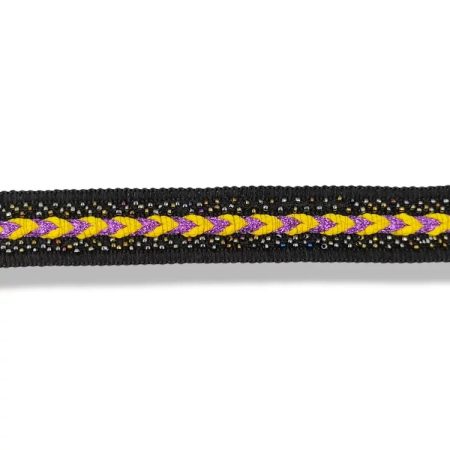 passamaneria realizzata con una bandina in poliestere nero lucido, con applicate delle stelle graffate e opache, che creano un c